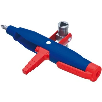 Easy to carry pen-style control cabinet key with fastening clip Three different key profiles can be utilised by swivelling the key holder Multi-purpose wrench for access on construction sites with profiles for the areas of heating, air conditioning, plumbing and building technology, e.g. for door and window handles or for radiator-bleeding Universal 1/4" bit adapter for standard bits (permanent magnet for retaining) Additional bit adapter for 1/4" bits inside one key profile Easy to carry pen-style control cabinet key with fastening clip, Weight: 0.32 Pounds, Manufacturer: Knipex