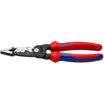 General description This wire stripper is designed for precise and efficient stripping of various cables and wires. It features a hybrid design that combines the compactness of needle-nose pliers with the stability of combination pliers, providing excellent accessibility and control. The tool is suitable for solid conductors from 0.75 to 6 mm² and fine-stranded conductors from 0.5 to 4 mm². It also allows easy cutting of copper and aluminum cables up to 15 mm in diameter. The stripper includes location ridges for accurate wire positioning, wide gripping surfaces for twisting wires, a milled groove for holding small workpieces like nails, and convex gripping surfaces for flat or round materials. Additionally, it has outer edges for deburring pipes, making it a versatile tool for electrical and home improvement tasks. Technical specifications Length: 200 mm Material: Metal with multi-component grips Color: Black atramentized finish Suitable for solid conductors: 0.75 - 6 mm² Suitable