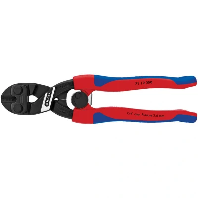 General description The CoBolt® Compact Bolt Cutters are professional-grade tools designed for cutting various materials with ease. Made from high-quality chrome vanadium electric steel that is oil-hardened and tempered, these cutters are durable and reliable. They efficiently cut piano wire, soft solid wire, bolts, nails, rivets, and screws. The lever action reduces the force needed to cut through tough materials, making them suitable for both professional and DIY use. The handles are coated with heavy-duty plastic for comfort and feature a return spring and locking mechanism for safe and convenient storage. Technical specifications Length: 200mm Material: Chrome vanadium electric steel Hardness: Oil-hardened and tempered Manufacturing standard: DIN ISO 5743 Compatibility and accessories Suitable for cutting piano wire Soft solid wire Bolts Nails Rivets Screws Installation No installation required; ready to use out of the box Usage Use the lever action to cut through various