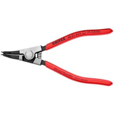 For easy fitting of external circlips. For rings 10 - 25 mm in diameter. Tips are forged outward and are used for installing rings on the outside of a shaft or groove. Forged from chrome vanadium electric steel and designed to minimize tip breakage, and offer extended tool life. Plastic coated handles., Weight: 0.19 pounds, Manufacturer: Knipex Tools
