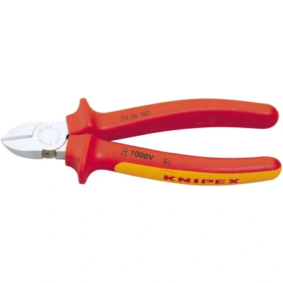 General description These VDE fully insulated diagonal side cutters are designed for professional use in live line working. They are tested to withstand voltages up to 10,000V and are insulated for safety up to 1000V AC and 1500V DC. Made from high-quality vanadium electric steel, they offer durability and precision for cutting various types of wires, including hard, medium-hard, and soft wires. Technical specifications Length: 160mm Material: Vanadium electric steel, oil hardened and tempered Cutting edges: Induction hardened to 62HRC Insulation: Two-color insulated handles with slip guards Standards: Manufactured according to DIN ISO 5749 and tested to EN 60900 Compatibility and accessories Compatible with various wire types, including hard, medium-hard, and soft wires. Installation No installation required; ready to use out of the box. Usage Use for cutting wires in electrical and maintenance work, especially in live line situations. Ensure proper insulation and safety precautions
