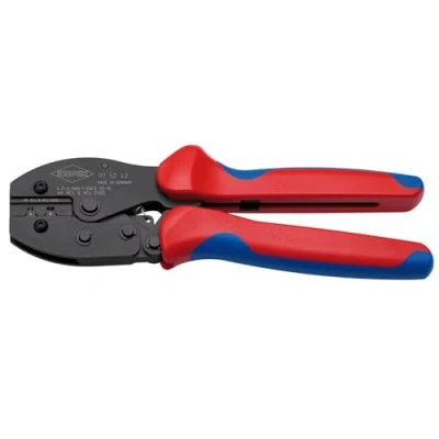 97 52 42 SB KNIPEX PreciForce For the installation of PV systems with MC4 and MC4 EVO 2 connectors. With improved crimp geometry for very good conductivity. For installations on residential and industrial buildings or on isolated systems such as mobile homes. Consistently high crimping quality due to precision dies and ratchet mechanism (unlockable). Precise, factory-set (calibrated) crimping pressure. High crimping force due to efficient lever action. Good handling thanks to favourable handle position, low weight, short design and ergonomically shaped handles. Crimping die is not exchangeable. for MC4- and MC4 EVO 2 connectors.