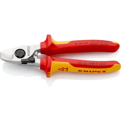 Knipex Cable Shears with opening spring chrome plated, insulated multi component grips, VDE tested 165 mm (self service card/blister) 95 26 SB