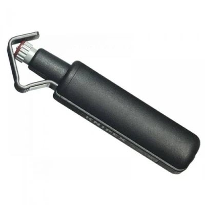Knipex Dismantling Tool For dismantling round cable sheaths made of PVC, rubber, silicone or PTFE from 6.0 - 29.0 mm dia. Self-tightening holding lever With knurled nut for cutting depth adjustment Changing from circular to longitudinal cutting by turning the tool body Spiral cutting for removing intermediate pieces Replaceable blade Housing: plastic, impact-proof