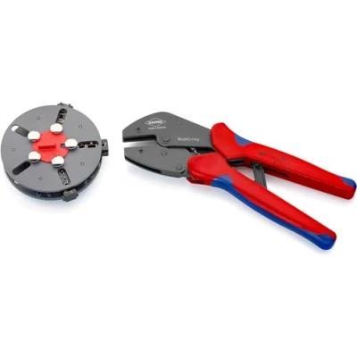 AmazonJust one tool for the most common crimping applications Crimping dies changed quickly and easily without any additional tool Sorted and protected storage of the interchangeable dies in a round magazine Comfortable, powerful crimping pliers in professional Quality Same reliable crimping results as with fixed crimping dies, Weight: 1.6975594174 pounds, Manufacturer: Knipex