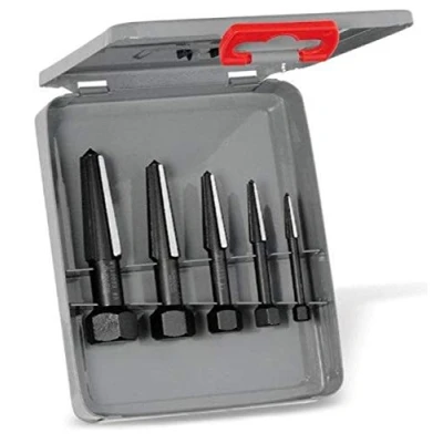 Set contains size 1-5 screw extractors in a metal case, great for storage Four double-edged cutting/gripping edges for 8 points of contact For both left and right hand threads Non-slip engagement removes even the toughest frozen bolts Tip has a center point so no additional center punch is required when centering the drill hole, Weight: 0.5 pounds, Manufacturer: Knipex Tools