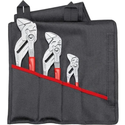 Pliers wrenches from KNIPEX are ideally suited for the gentle gripping, holding, pressing and bending of workpieces, each one replacing an entire set of wrenches The practical, hard-wearing polyester fabric tool roll protects your tools and the hook-and-loop fastener keeps them within easy reach! These sets each contain three pliers wrenches of different sizes with slim, plastic-coated handles Like all pliers wrenches from KNIPEX, their smooth, parallel jaws allow firm yet gentle gripping – even when working with chrome!, Weight: 3.3510263824 Pounds, Manufacturer: Knipex