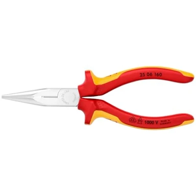 KNIPEX Tools Long Nose Pliers with Cutter, Chrome, 1000V Insulated (2506160)