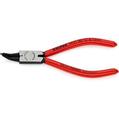 44 31 J02 Circlip Pliers Solid style, forged. Non-slip, solid tips. on basis of DIN 5256 C and DIN 5256 C, but 45° bent jaws. - Size of bore: Ø 8 – 13mm- Tips (diameter): Ø 0.9mm
