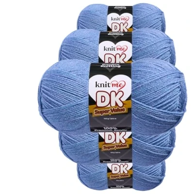 Knit Me DK Double Knitting Yarn Hypoallergenic Acrylic 5X 100g (Sky Blue)