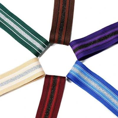 Knit Tape Striped Trimming Ribbon,Glitter Silver Stripe,Costume,Cheerleader,Sports,Apparel. Knitted Strapping,25mm Wide. Slight Stretch Decoration Braid. Neotrims UK. Brown 3m