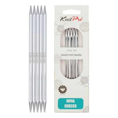 Available Needle Sizes: KnitPro Nova Cubics Double Pointed needles are available in 16 popular sizes, ranging from 2mm, 2.25mm, 2.5mm, 2.75mm, 3mm, 3.25mm, 3.5mm, 3.75mm, 4mm, 4.5mm, 5mm, 5.5mm, 6mm, 6.5mm, 7mm and 8mm, perfect for knitting circular items in small circumference like socks, gloves, mittens, beanies, etc. Electropolished Brass Needle: KnitPro Nova Cubics Double Pointed Needles are nickel-free brass needles, electropolished with chrome for better protection and corrosion resistance. Carrying the inherent strength and durability of brass, these needles enable a smooth experience every time. Ergonomic Cube Shape: The unique cube shape design of these needles increases the touchpoints for a comfortable grip and a smooth knitting experience. The ergonomic cube shape enhances the knitting speed and efficiency of the knitter. Pad-Printed Needle Sizes: Each pair of knitting needles has pad-printed sizes in black ink that remain legible and do not wear off with regular use. These precise and smudge-free markings are not impacted by friction of the yarn or the hands of the knitter while they knit. Plastic Free FSC- certified paper packaging: KnitPro Nova Cubics Double Pointed Needles are packaged in environmentally-friendly recycled paper that is certified by the Forest Stewardship Council (FSC). The paper used for the packaging is sourced responsibly, ensuring the preservation of our environment.