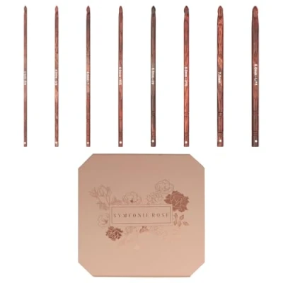 ELEGANT ROSEWOOD CRAFTSMANSHIP: The KnitPro Symfonie Rose crochet hook set is crafted with exquisite red-brown polished wood, offering an elegant and visually appealing touch to your crochet tools LIGHTWEIGHT AND WARM: Experience the lightweight nature and warm feel of these crochet hooks VERSATILE SIZE RANGE: The set comprises 8 crochet hooks in sizes ranging from 3.50mm to 8.00mm, providing versatility for various crochet projects LUXURIOUS PACKAGING: Housed in a luxurious soft pink box with gold print, this crochet hook set not only serves as a practical tool but also adds a touch of sophistication to your crafting collection EFFORTLESS CROCHETING: The red-brown polished wood enhances the overall crocheting experience, allowing you to work effortlessly and with precision on your projects