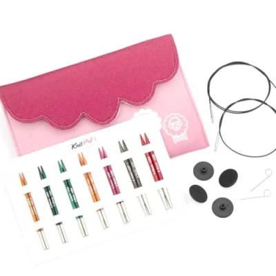 Set Includes: KnitPro Dreamz Midi Interchangeable Circular Needle Set contains 7 interchangeable circular needle sizes 3mm, 3.25mm, 3.5mm, 3.75mm, 4mm, 4.5mm and 5mm. It has 2 cables measuring 40cm and 1 cable measuring 50cm in length, along with 4 end caps, and 2 cable keys as accessories. Polished & Colourful: The needles in this set are radiant, comfortable, and easy on the hands of the knitter. These colour coded birch wood needles have a rich, smooth finish, and glide effortlessly through different types of yarn. Go- to Choice: Notable features like handcrafted tips, flawless design, and radiant colours make the needles in this set a preferred choice. An absolute must-have for beginners and expert knitters, they give hours of pleasurable knitting. Versatile Application: Available in various lengths and sizes the birch wood needles in this set are perfect for knitting a variety of circular items. Perfect for knitting circular items like socks, gloves, mittens, beanies, and even flat projects like blankets. Practical and User-Friendly Packaging: KnitPro Dreamz Interchangeable Circular Needle Set comes in a zippered fabric case for easy storage and organization. The compact case with elastic loops keeps the needles neatly tucked in place.
