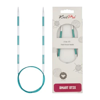 Fixed Circular Needles: Made from fine quality aluminum, KnitPro Smartstix Fixed Circular needles are lightweight and built to last through longer knitting sessions. The perfectly crafted metal tips and kink-free cable move effortlessly through the yarn creating beautiful knitted pieces. Available Needle Sizes: KnitPro Smartstix Fixed Circular needles are color coded and available in 19 popular sizes, ranging from 2mm to 12mm, perfect for knitting cowls, headbands, scarves, etc. 2-in-1 Knitting Tool: Smartstix is a perfect tool for smart knitters, who prefer precise knitting with accurate measurements. Each Smartstix needle and cable is marked with a 2cm gap that lets you measure the gauge as you knit. This unique built in measurement design enables faster and efficient knitting. Laser-Printed Sizes: Each pair of vibrant Smartstix knitting needles and cables have laser-printed markings that make them a preferred choice among knitters. These precise markings do not rub off due to friction of the yarn or the hands of the knitter. Sustainable Paper Packaging: Packaged in FSC-certified recycled paper, these needles prioritize sustainability with responsibly sourced, plastic-free materials to help protect the environment.