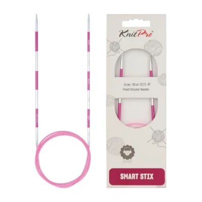 Fixed Circular Needles: Made from fine quality aluminum, KnitPro Smartstix Fixed Circular needles are lightweight and built to last through longer knitting sessions. The perfectly crafted metal tips and kink-free cable move effortlessly through the yarn creating beautiful knitted pieces. Available Needle Sizes: KnitPro Smartstix Fixed Circular needles are color coded and available in 19 popular sizes, ranging from 2mm to 12mm, perfect for knitting cowls, headbands, scarves, etc. 2-in-1 Knitting Tool: Smartstix is a perfect tool for smart knitters, who prefer precise knitting with accurate measurements. Each Smartstix needle and cable is marked with a 2cm gap that lets you measure the gauge as you knit. This unique built in measurement design enables faster and efficient knitting. Laser-Printed Sizes: Each pair of vibrant Smartstix knitting needles and cables have laser-printed markings that make them a preferred choice among knitters. These precise markings do not rub off due to friction of the yarn or the hands of the knitter. Sustainable Paper Packaging: Packaged in FSC-certified recycled paper, these needles prioritize sustainability with responsibly sourced, plastic-free materials to help protect the environment.