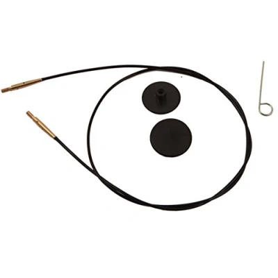 Made of resilient and flexible material Provides a smooth join, with no kinks or twists Long threaded screw-in join ensures that cables and needles stay connected End caps easily fit on cables and keeps the knitting safe This product contains: 1 x KnitPro - KnitPro Black Interchangeable Cable (60cm) with Gold Connectors - 1 Piece