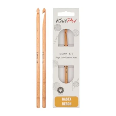 KnitPro KP35701 5.5 mm Basix Single Ended Crochet Hook, Birch Beige
