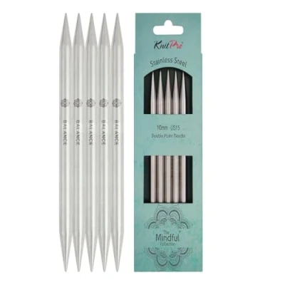 KnitPro Mindful Double Pointed Needles 20cm x 10mm Ended Knitting Pins, Set of 5, Silver