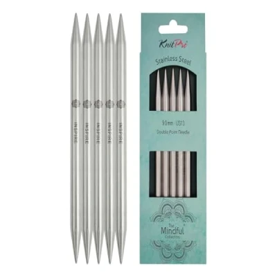 KnitPro Mindful Double Pointed Needles 20cm x 9mm Ended Knitting Pins, Set of 5, Silver