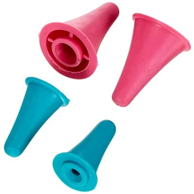 Set of 4 knitting pin point protectors - 2x small and 2 large. Suitable for knitting needle sizes 2.0mm - 10.0mm. Neatly holds work onto knitting pins when not in use. Protect your knitting needle points from damage.