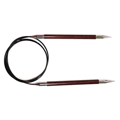 Circular Knitting Pins - 100cm - Royale Luxury colourful wooden needles with a striking striped pattern and glittering electroplated brass tips to the needle ends Warm to touch and super comfortable to knit with Colour coded sizing across the range, and laser printed size on needle tips, make finding and organising easy Royale fixed circular needles have a 360 degree swivel cable mechanism
