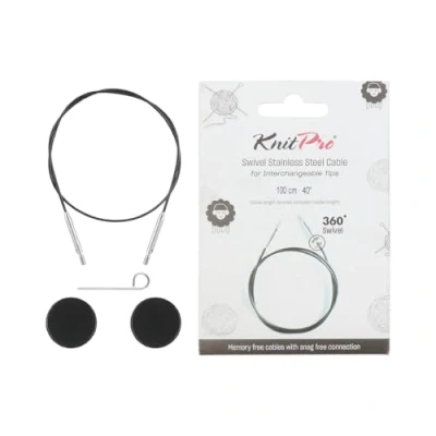 KnitPro The Mindful Collection Stainless Steel Black/Silver Swivel 360 Interchangeable Cable for 100cm Needle 1 Piece