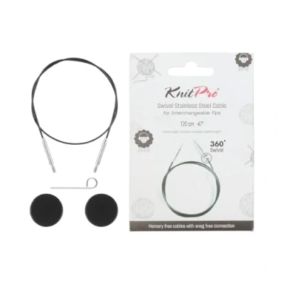 KnitPro The Mindful Collection Stainless Steel Black/Silver Swivel 360 Interchangeable Cable for 120cm Needle 1 Piece