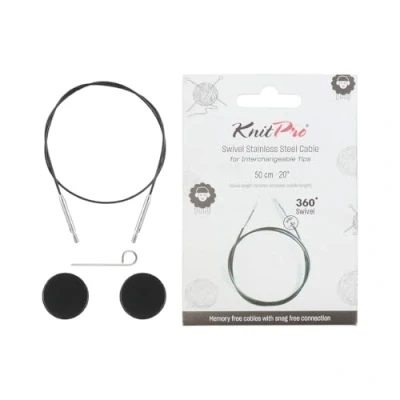 KnitPro The Mindful Collection Stainless Steel Black/Silver Swivel 360 Interchangeable Cable for 50cm Needle 1 Piece