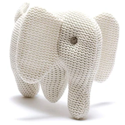 Knitted White Organic Cotton Elephant Baby Rattle, Suitable from Birth