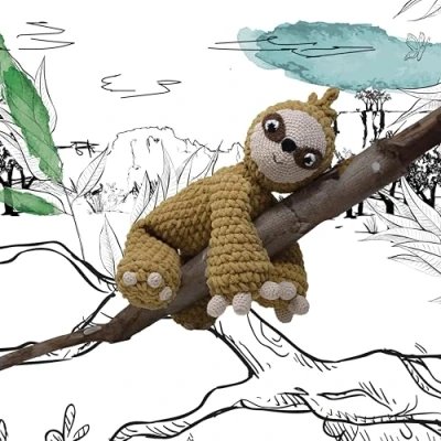 KNITTY CRITTERS Main Collection Sammi Sloth Beginner Friendly Crochet Craft Kit with Recycled Yarn