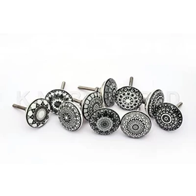 KNOBSWORLD 10 x Mix Vintage Look Flower Ceramic Knobs Door Handle Cabinet Drawer Cupboard Pull Xfer (Black xfer)