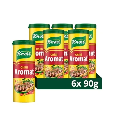 Knorr Aromat Chilli All Purpose Savoury Seasoning is a finely balanced blend of herbs and spices ideal for vegetables, rice, pasta, salads or to rub into meat or poultry before roasting or grilling Incredibly versatile, use Knorr Aromat Chilli All Purpose Savoury Seasoning whilst cooking or at the table to add extra flavour to almost any savoury dish A finely balanced blend of herbs and spices to bring out the best in your cooking Knorr Aromat Chilli All Purpose Savoury Seasoning is free from artificial preservatives and is suitable for vegetarians and vegans Suitable for air fryer usage, Aromat seasoning is a cupboard essential that instantly transforms the taste of everyday meals Use just like salt and pepper for an easy way to flavour everything