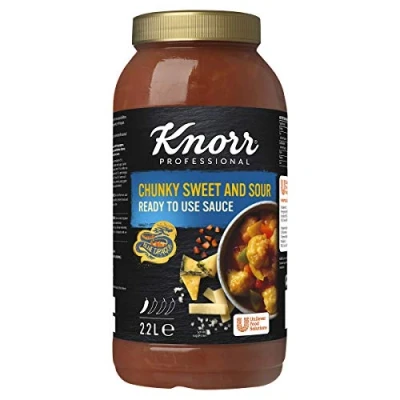 Bain marie stable Suitable for a lactose free diet Number of items: 1.0 Country string: United Kingdom A sweet and sour sauce combining pepper, pineapples, carrots, onion and bamboo shoots with rice vinegar and light soy sauce Lactose Free Suitable for Vegans
