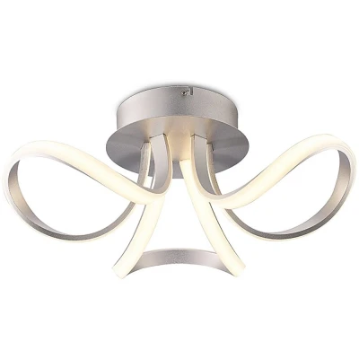 Knot Semi Flush Ceiling 36W LED 2 Looped Arms 3000K, 2850lm, Silver, Frosted Acrylic