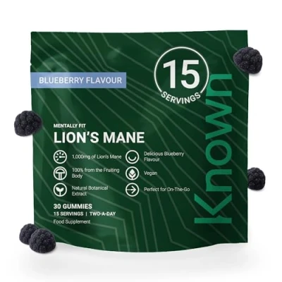 Known Delicious Lion's Mane Gummies 1000mg Mushroom Natural Blueberry Flavour 30 Vegan Gummies, 15 Day Supply