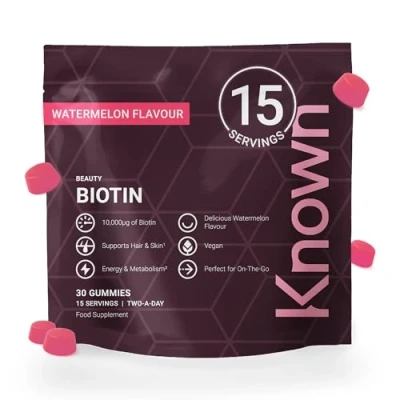 Known High Strength Biotin Gummies 10,000µg Supports Healthy Hair & Skin Natural Watermelon Flavour 30 Vegan Gummies, 15 Day Supply