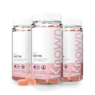 Known High Strength Biotin Gummies 10,000µg Supports Healthy Hair & Skin Natural Watermelon Flavour 60 Vegan Gummies, 3 Months Supply