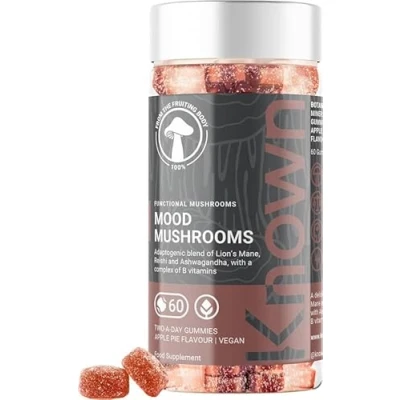 Known Mood Mushrooms 60 x Two a Day Vegan Gummies with Reishi Mushrooms, Lions Mane and Ashwagandha Halal Apple Pie Flavoured Adaptogenic Mushroom Gummy Nootropic Supplement for & Stress