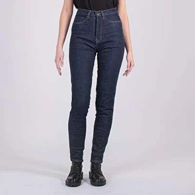 Made from Stretch 10oz Cordura denim woven with COOLMAX Seamlessly part lined with DuPont Kevlar fabric for abrasion coverage Internally lined with lightweight stretch cotton for comfort, breathability and its naturally antibacterial qualities Invisible amour pockets with external access for easy adjustment and removal / Includes removable Knox CE approved MICRO-LOCK knee and hip armour Carefully tailored for an impeccable high waisted skinny fit / Adjustable knee pocket to give precise knee armour fit