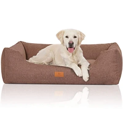 Knuffelwuff Velour Dog Bed Lotte with Fine Hand Woven Material Look XL 105 x 75cm Light Brown