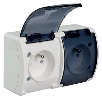 Koala double socket z/u (2x2P+Z) n/t IP44 white smoke flap VG 162 51 61.385 electro plast spatula 5901769016118