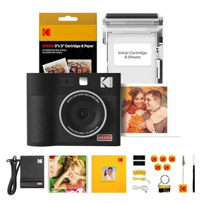 [Gift that brings happiness all the time] It will truly bring joy for you to gift your Kodak Mini Shot 3 ERA to your loved ones. Gift this portable photo printer to your loved ones and capture a lifetime of happy moments with them. [Premium Quality Prints] 34Bit / 16.7 Million Colors. Refined saturation and enhanced color display by ‘Highlight Saturation’ improvement. Utilizing 4PASS technology, the Kodak Mini Shot 3 ERA delivers flawless prints. The laminated, multi-layered prints are fingerprint and water-resistant, ensuring your memories last a lifetime. [Auto Focus & Face Detection] Effortlessly capture detailed shots with auto-focus and face detection features. Let the instant camera do the work, ensuring your subjects are always in focus and your photos are sharp and clear. [Instant Camera + Photo Printer] The Kodak Mini Shot 3 ERA is your all-in-one instant camera and photo printer combo. Print and cancel your images instantly. Connect and print directly from your mobile device gallery via Bluetooth, compatible with Apple iPhone, iPad, and Android devices. [Lowest Photo Cost] Say goodbye to expensive photos! The Kodak Mini Shot 3 ERA makes printing a breeze, offering photos at half the cost when purchased in a cartridge bundle. Print more, save more with this retro camera and printer.