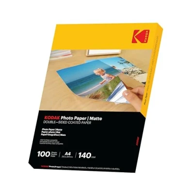 KODAK Photo Paper A4 (Double Sided Matte 140gsm 100 Sheets) Premium Photographic Paper, Universally Compatible with All Inkjet Printers, Perfect Printing for HP, Epson, Canon (Size 210 x 297mm)