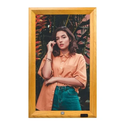 Display your family photos and holiday snaps on this 23” Full HD Digital Photo Frame The brightness sensor adapts to the light in the room, so it looks great any time of the day As well as photos, you can show videos or play music – it can even double as a clock There's plenty of space with 32 GB of storage for over 10,000 photos – or you can pop in a memory card or USB stick Share your photos and videos wirelessly with the Kodak app – you can even upload holiday pics while you're still there
