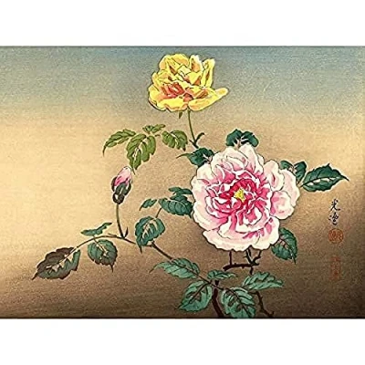 Koitsu Colourful Roses Flowers Japanese Painting Art Print Canvas Premium Wall Decor Poster Mural