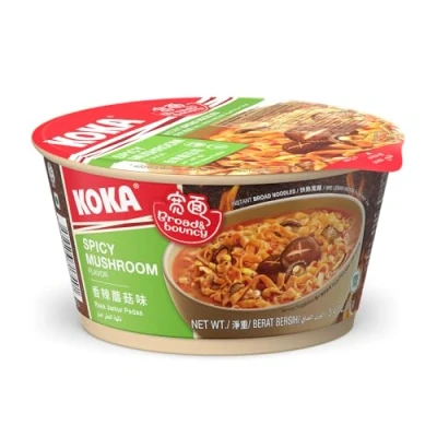 Koka Spicy Broad Noodles Mushroom Flavour 95g bowl