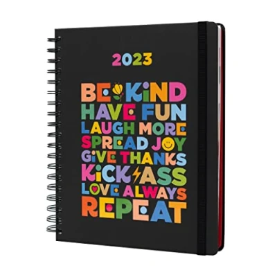🌈 Plan and Organise - A practical and convenient 2022-2023 diary, essential for organizing your daily commitments and activities; ideal for writing down reminders and notes. This diary 2023 week to view is ideal as a professional planner or business planner. Be Kind, Have Fun, Laugh More, Spread Joy, Give Thanks, Kick Ass, Love Always, Repeat! 🌈 Planner 2022-2023 Academic Year - This 17-month academic diary runs from August 2022 to December 2023 and has a week to view layout. It features originally designed illustrations at the beginning of each month and a monthly overview with space for notes and priorities. Diary 2023 made of high-quality material with reinforced wire-o binding. 🌈 Back To School Supplies - The 2022-2023 academic diary includes 2 pages full of stickers to customize this cute organiser planner. Comes with a die cut bookmark, a bucket list, travel planner sheets, 1 sheet of schedules, monthly goals, public holidays info and a monthly budget planner 🌈 Daily Planner - This student planner 2022-2023 gives you plenty of space to write down your to do activities thanks to its functional and big size 8.3 x 9.8 inches (21 x 25 cm). Carry your homework planner in your backpack, school bag or tote bag! It features high quality hard covers with anti-scratch treatment and a convenient elastic band for easy closure. 🌈 2023 Diary - It includes 260 blank pages of 120gsm to prevent ink bleeding. Kokonote school diary 2022-2023 range is manufactured with FSC certified paper from responsible sources in order to reduce carbon footprints and is packed in a gift box. 🌈 Kokonote - Sparks Out Of Routine with our products made of the best materials out there. We pride ourselves on providing quality and durable products since 1997. Check our Amazon catalogue and discover our extensive range of stationery and merchandising products! Plan, Organize and Enjoy!