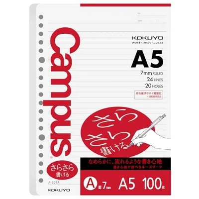 Kokuyo A ruled loose leaf A5 20 hole 100 sheets Roh 807A (japan import)