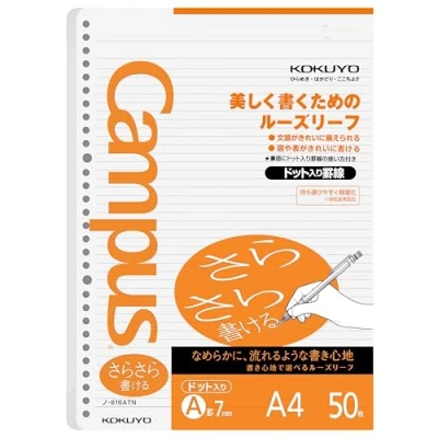 Kokuyo Campus Loose Leaf Paper for Binders, Sarasara Smooth Writing, A4, A 7mm Dotted Ruled, 30 Holes, 35 Lines, 50 Sheets, pH Neutral, Bleed Resistant, 75gsm, Pack of 5, Japan Import (NO 816ATN)